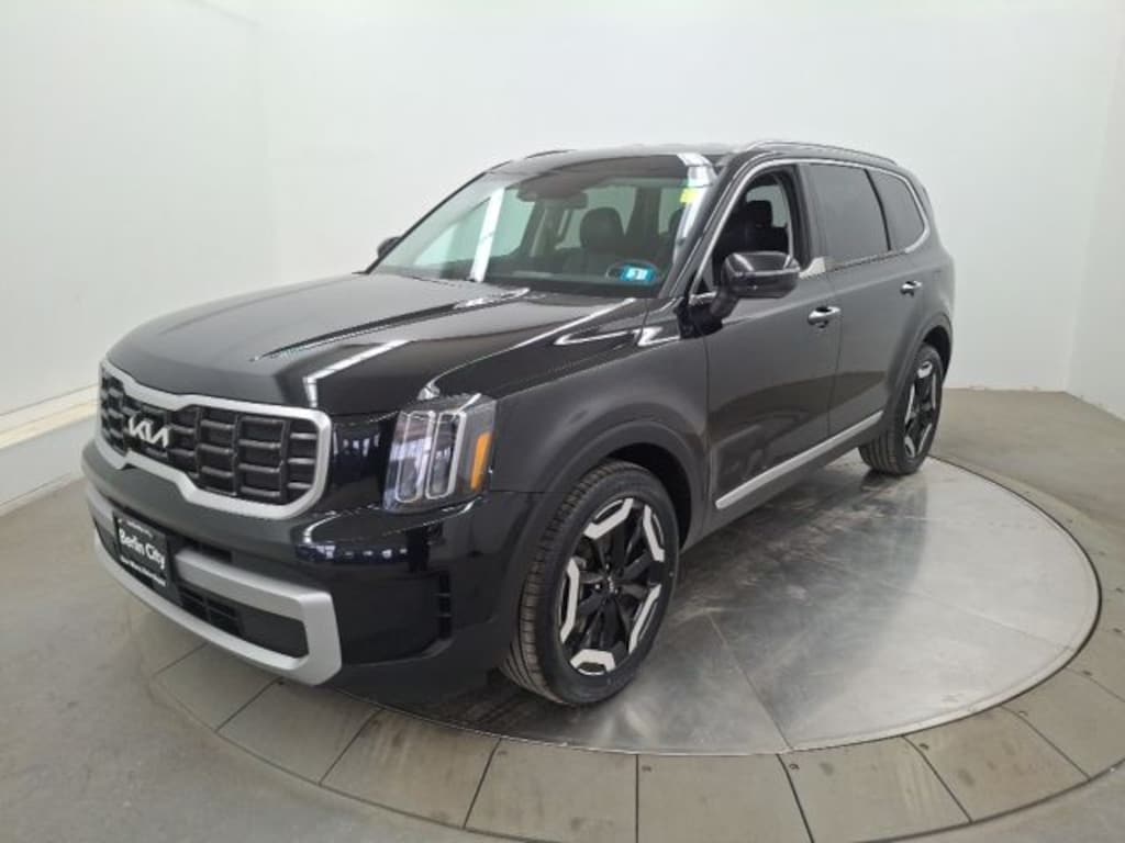 One Owner, Clean Carfax / No Accidents Reported, Recent Trade, Bluetooth/CellPhone, Back Up Camera, Navigation GPS, Heated Seats, 3rd Row Seats, All Wheel Drive, 3rd row seats: split-bench, 4-Wheel Disc Brakes, ABS brakes, AM/FM radio: SiriusXM, Apple CarPlay & Android Auto, Automatic temperature control, Brake assist, Driver vanity mirror, Dual front impact airbags, Dual front side impact airbags, Electronic Stability Control, Emergency communication system: 911 Connect, Exterior Parking Camera Rear, Four wheel independent suspension, Front anti-roll bar, Front Center Armrest, Front dual zone A/C, Front reading lights, Fully automatic headlights, Heated door mirrors, Heated Front Bucket Seats, Illuminated entry, Knee airbag, Leather Shift Knob, Leather steering wheel, Low tire pressure warning, Navigation System, Occupant sensing airbag, Outside temperature display, Overhead airbag, Overhead console, Passenger vanity mirror, Power door mirrors, Power driver seat, Power steering, Power windows, Rear air conditioning, Rear anti-roll bar, Rear side impact airbag, Rear window defroster, Rear window wiper, Reclining 3rd row seat, Remote keyless entry, Smart Key w/ Push Button and Remote Start, Speed-sensing steering, Split folding rear seat, Steering wheel mounted audio controls, SynTex Synthetic Leather Seat Trim, Tachometer, Telescoping steering wheel, Tilt steering wheel, Traction control, Trip computer, Turn signal indicator mirrors, Variably intermittent wipers, Wheels: 20" x 7.5" Black Finish. 2023 Kia Telluride 4D Sport Utility S AWD 8-Speed Automatic 3.8L V6 DGI DOHC Dual CVVT Ebony Black