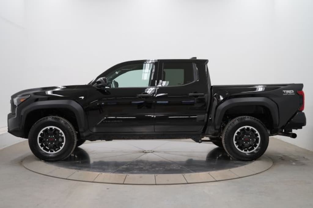 One Owner, Clean Carfax / No Accidents Reported, Bluetooth/CellPhone, Back Up Camera, 4X4, 4-Wheel Disc Brakes, ABS brakes, Air Conditioning, AM/FM radio: SiriusXM, Anti-whiplash front head restraints, Apple CarPlay/Android Auto, Automatic temperature control, Brake assist, Driver door bin, Driver vanity mirror, Dual front impact airbags, Dual front side impact airbags, Electronic Stability Control, Emergency communication system: Safety Connect (1-year trial), Exterior Parking Camera Rear, Fabric Seat Trim, Four wheel independent suspension, Front anti-roll bar, Front Bucket Seats, Front Center Armrest, Front fog lights, Front reading lights, Fully automatic headlights, Heated door mirrors, Illuminated entry, Knee airbag, Leather Shift Knob, Leather steering wheel, Low tire pressure warning, Occupant sensing airbag, Outside temperature display, Overhead airbag, Overhead console, Panic alarm, Passenger door bin, Passenger vanity mirror, Power door mirrors, Power steering, Power windows, Radio: 8" Toyota Audio Multimedia, Rear window defroster, Remote keyless entry, Speed-sensing steering, Split folding rear seat, Steering wheel mounted audio controls, Tachometer, Telescoping steering wheel, Tilt steering wheel, Traction control, Trip computer, Turn signal indicator mirrors, Variably intermittent wipers, Wheels: 17" TRD Off-Road Alloy. 2025 Toyota Tacoma 4D Double Cab TRD Off-Road 4WD 8-Speed Automatic 2.4L 4-Cylinder Black